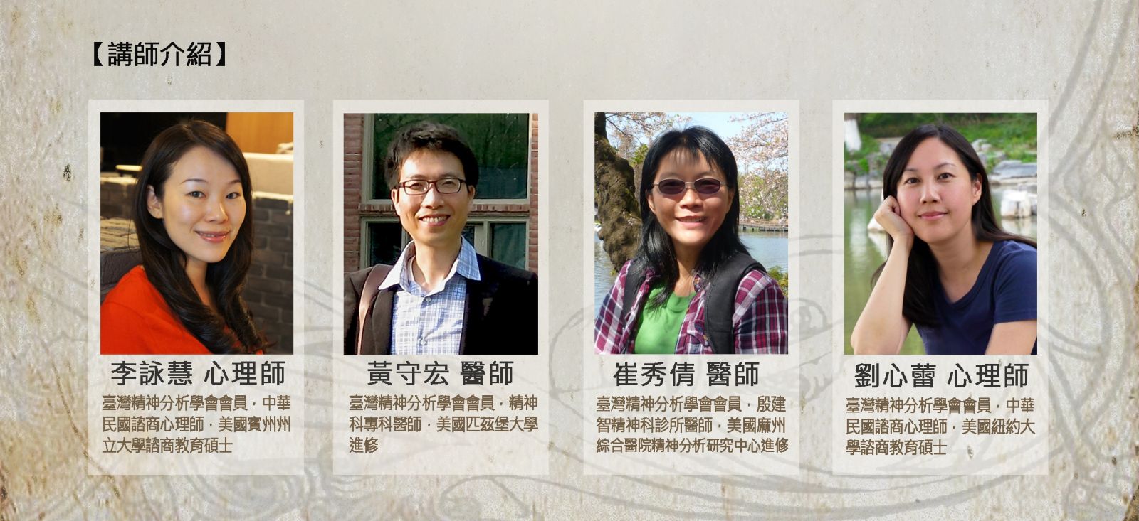 【講師】: 李詠慧、黃守宏、崔秀倩、劉心蕾